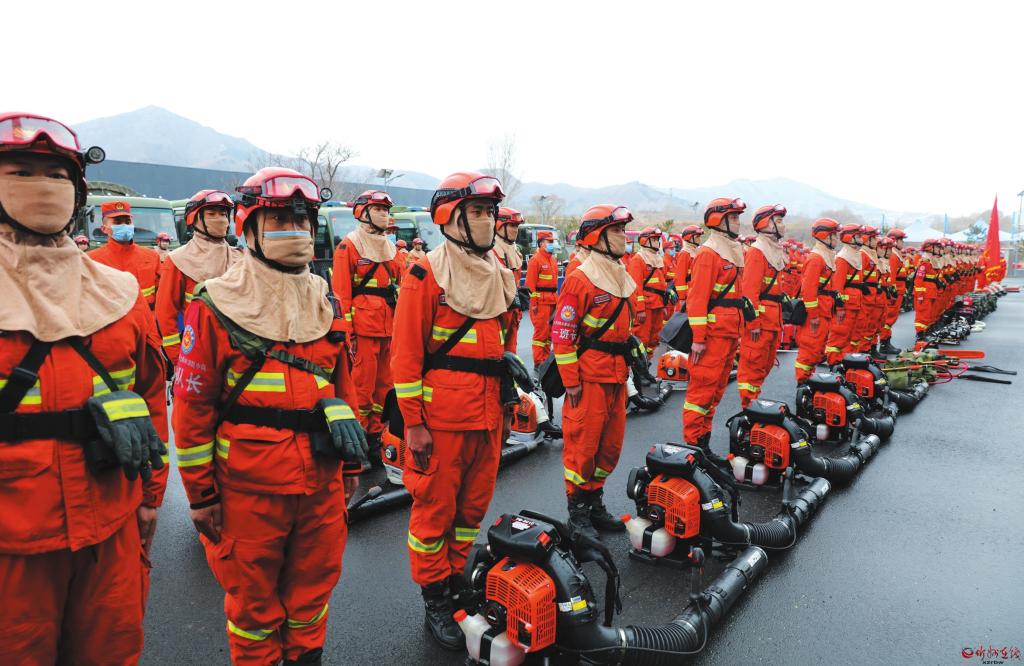 為提升森林草原防滅火能力,推進(jìn)森林消防救援力量融合化訓(xùn)練,保障火險期森林草原安全,近日,五臺縣組織開展森林草原防滅火實戰(zhàn)演練。圖為實戰(zhàn)演練現(xiàn)場。(記者 范 濤攝)