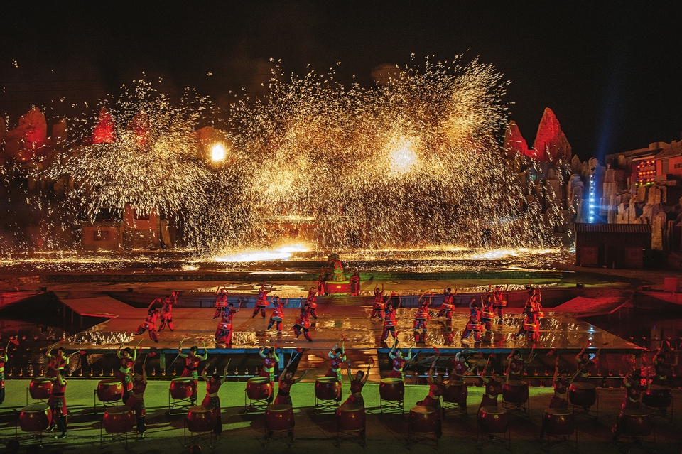 2月18日夜晚,晉城城區(qū)司徒小鎮(zhèn)的《千年鐵魂》演出現(xiàn)場(chǎng),近千人的劇場(chǎng)座無虛席,融合在璀璨燈光舞美、民俗演繹故事里的“打鐵花”表演恢宏壯闊,令八方來客看得如癡如醉。此時(shí)的華誼兄弟星劇場(chǎng)同樣人潮涌動(dòng)。大型沉浸式融合秀《重逢晉城》,通過大型特效舞臺(tái)互動(dòng)裝置、VR和AR虛擬現(xiàn)實(shí)等技術(shù)手段,融匯話劇、歌舞、武術(shù)、威亞等互動(dòng)演藝,實(shí)景再現(xiàn)晉城6大歷史文化場(chǎng)景,讓每位觀眾“穿越時(shí)空、一夢(mèng)千年”,直呼震撼、過癮。