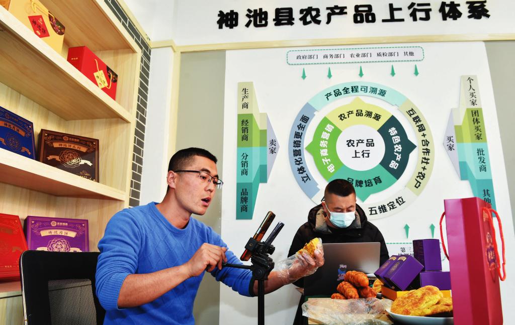 神池縣電子商務公共服務中心是2018年該縣獲批為“國家電子商務進農村試點示范縣”后成立的,總投資2000萬元,在多個電商平臺建立店鋪,宣傳神池公共品牌及農副產品。截至今年10月份,全網農副產品銷售總額已突破4000余萬元。 馮曉磊 攝