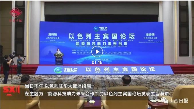 在高峰論壇發(fā)表主旨演講;與太原市市長(zhǎng)共同種植友誼樹30棵并樹立紀(jì)念碑,寓意中以30年合作取得豐碩成果;出席以色列分論壇與能源產(chǎn)業(yè)B2B對(duì)接會(huì)......作為以色列駐華大使,潘綺瑞和她所代表的以色列“主賓國(guó)”之旅很是繁忙。