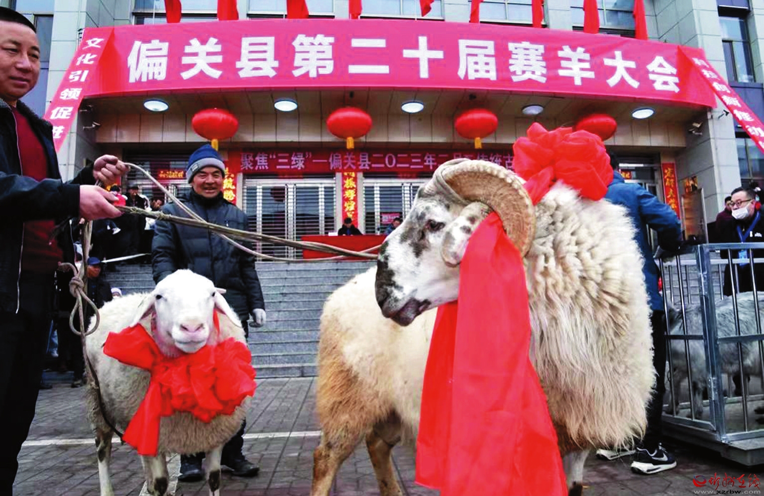 2月22日,偏關(guān)縣賽羊大會現(xiàn)場,獲獎“明星羊”吸引了眾多鄉(xiāng)親的目光。當日,偏關(guān)縣第二十屆賽羊大會隆重舉行,來自萬家寨鎮(zhèn)、樓溝鄉(xiāng)、老營鎮(zhèn)、老牛灣鎮(zhèn)等代表隊的60多只優(yōu)種羊參加了角逐。經(jīng)評委嚴格公正的評選,樓溝鄉(xiāng)東寨村武新華奪得“優(yōu)良品種引進推廣一等獎”。另外,還評出“羊產(chǎn)業(yè)開發(fā)貢獻獎”1名、“特色產(chǎn)業(yè)發(fā)展獎”1名、“組織獎”3名。養(yǎng)羊是偏關(guān)縣的大產(chǎn)業(yè),賽羊大會也成為了當?shù)氐囊环N傳統(tǒng)文化。賽羊大會的舉辦對全縣養(yǎng)殖產(chǎn)業(yè)發(fā)展、農(nóng)民增收致富起到積極的推動作用。(本報通訊員攝)