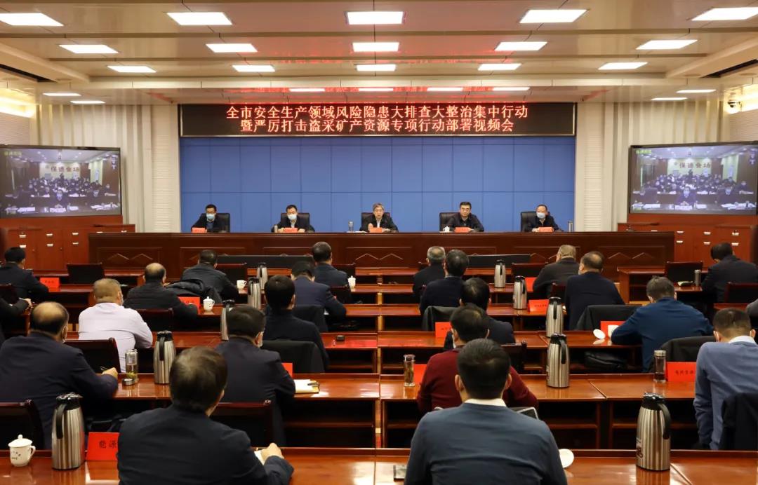 12月21日,全市安全生產(chǎn)領(lǐng)域風(fēng)險(xiǎn)隱患大排查大整治集中行動(dòng)暨嚴(yán)厲打擊盜采礦產(chǎn)資源專項(xiàng)行動(dòng)部署會(huì)召開,貫徹全省會(huì)議精神,安排我市當(dāng)前工作。市委書記朱曉東主持會(huì)議并作重要講話,強(qiáng)調(diào)歲末年關(guān)各項(xiàng)工作千頭萬緒,安全生產(chǎn)的嚴(yán)峻性、艱巨性、緊迫性尤為突出,各級(jí)各部門務(wù)必高度重視,從嚴(yán)警醒起來,堅(jiān)決杜絕麻痹僥幸心理、松懈情緒,以永遠(yuǎn)在路上的心態(tài),以一切從零開始的作為,堅(jiān)持兩手用力,推進(jìn)兩個(gè)行動(dòng),全面落實(shí)好省委省政府和市委市政府部署要求,堅(jiān)決守牢安全生產(chǎn)底線。市委副書記、市政府黨組書記李建國(guó),市委常委、常務(wù)副市長(zhǎng)趙新年,副市長(zhǎng)、市公安局長(zhǎng)袁小波,市政府秘書長(zhǎng)張艮生出席會(huì)議。會(huì)議以視頻方式召開,各縣(市、區(qū))設(shè)分會(huì)場(chǎng),兼任縣(市、區(qū))職務(wù)的市領(lǐng)導(dǎo)在分會(huì)場(chǎng)出席會(huì)議。市政府安委會(huì)成員單位和相關(guān)重點(diǎn)企業(yè)負(fù)責(zé)人在市主會(huì)場(chǎng)參加會(huì)議。