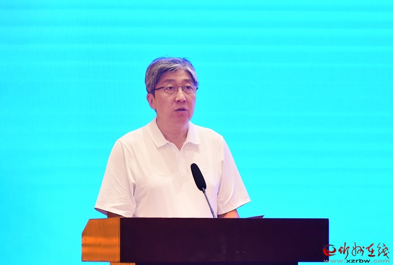朱曉東致辭。馮曉磊攝 朱曉東代表市委、市政府向會(huì)議的成功舉辦表示祝賀,向省政協(xié)及五市政協(xié)對(duì)忻州長(zhǎng)期以來(lái)的關(guān)心支持表示衷心感謝。他指出,黃河流域生態(tài)保護(hù)和高質(zhì)量發(fā)展是習(xí)近平總書(shū)記親自謀劃的重大國(guó)家戰(zhàn)略,“一泓清水入黃河”更是習(xí)近平總書(shū)記寄予山西的殷切期盼。近六年來(lái),習(xí)近平總書(shū)記先后四次蒞臨山西考察調(diào)研,為我們做好黃河流域生態(tài)保護(hù)和高質(zhì)量發(fā)展領(lǐng)航定向,我們倍加振奮、倍增信心。忻州作為黃河入境第一市,寧武、靜樂(lè)兩縣作為汾河源頭,山、水、林、田、湖、草要素齊備,最大的價(jià)值在生態(tài),最大的責(zé)任在生態(tài),最大的潛力也在生態(tài),推動(dòng)汾河流域生態(tài)保護(hù)和高質(zhì)量發(fā)展是一項(xiàng)重大的政治工程、生態(tài)工程、發(fā)展工程、民生工程,事關(guān)全局,事關(guān)長(zhǎng)遠(yuǎn),更是我們責(zé)無(wú)旁貸的重大使命。