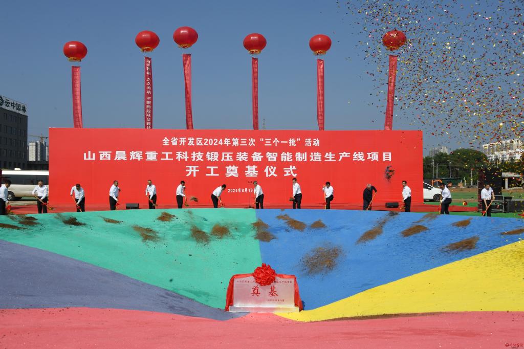 活動(dòng)期間,與會(huì)人員共同為“開(kāi)工一批”重點(diǎn)項(xiàng)目——山西晨輝重工科技鍛壓裝備智能制造生產(chǎn)線項(xiàng)目培土奠基,現(xiàn)場(chǎng)觀摩了“投產(chǎn)一批”重點(diǎn)項(xiàng)目——一道新能源(忻州)有限公司14GW光伏電池生產(chǎn)基地項(xiàng)目。(張曄)
