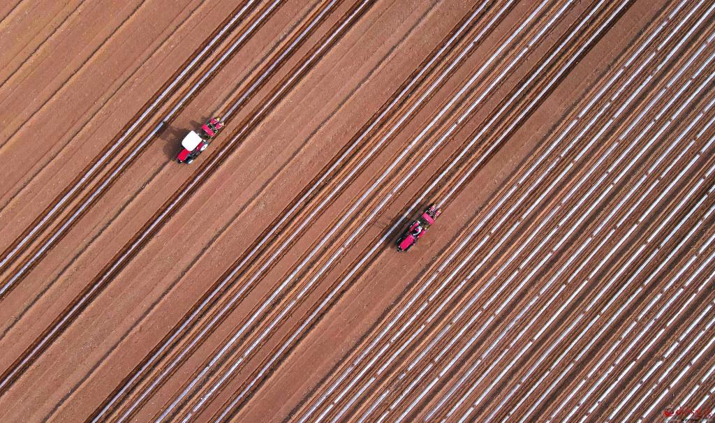 4月21日,在忻州民宇農(nóng)業(yè)甜糯玉米標(biāo)準(zhǔn)化種植基地,兩臺玉米膜側(cè)播種機聯(lián)合作業(yè),搶農(nóng)時進(jìn)行播種。近年來,該基地采用玉米膜側(cè)播種綜合栽培技術(shù)進(jìn)行播種,有效解決了高溫導(dǎo)致玉米早衰等問題,提高了降水利用率,增加了玉米產(chǎn)量。 (張存良攝)