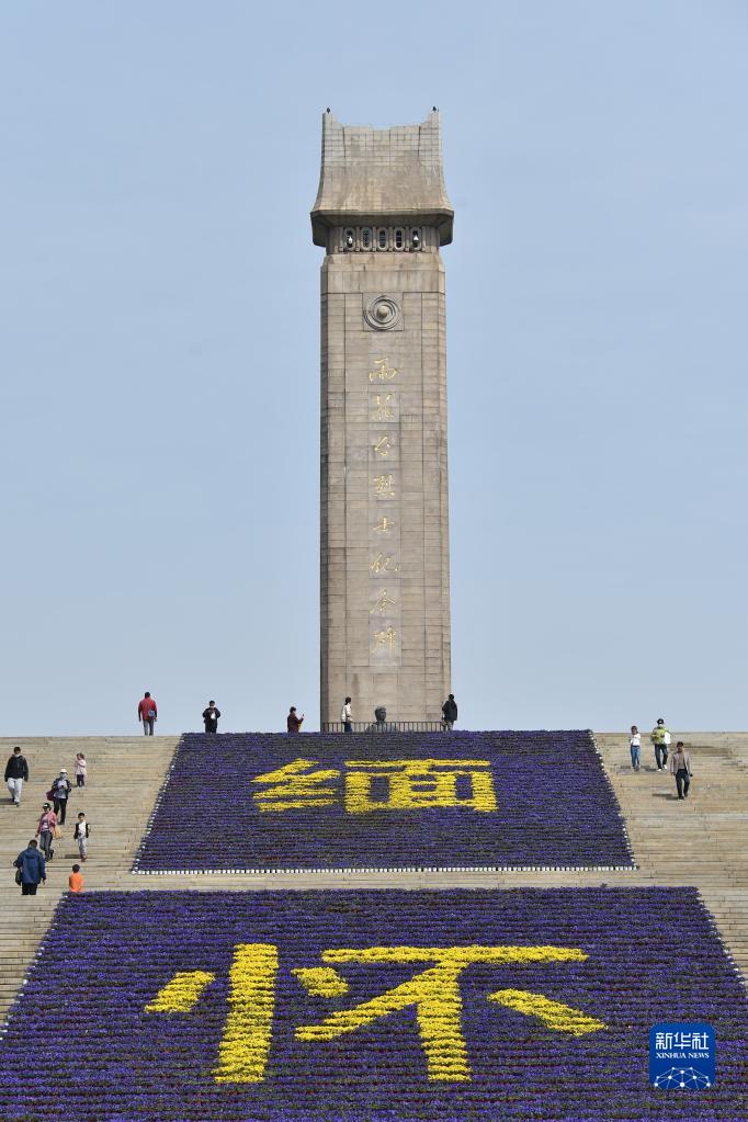 4月4日,人們來到南京雨花臺烈士紀(jì)念碑前緬懷英烈。