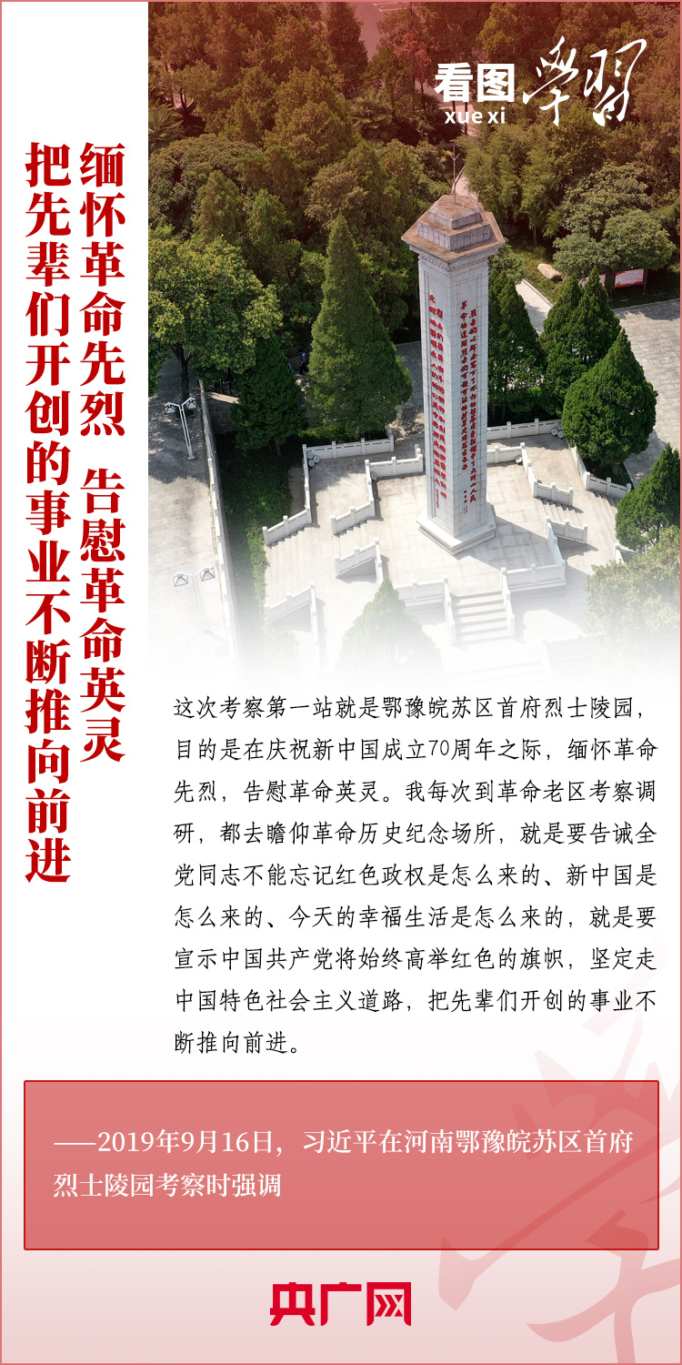 緬懷革命前輩,告慰先烈英靈。黨的十八大以來,習(xí)近平總書記多次在重大活動、赴地方調(diào)研時(shí),或深情追憶革命前輩、英雄烈士,或向革命紀(jì)念場館禮敬鮮花、關(guān)心看望英烈親屬。總書記勉勵(lì)大家要繼承革命先烈遺志,把他們流血犧牲打下的紅色江山守護(hù)好、建設(shè)好,以實(shí)現(xiàn)中華民族偉大復(fù)興來告慰革命前輩和先烈。