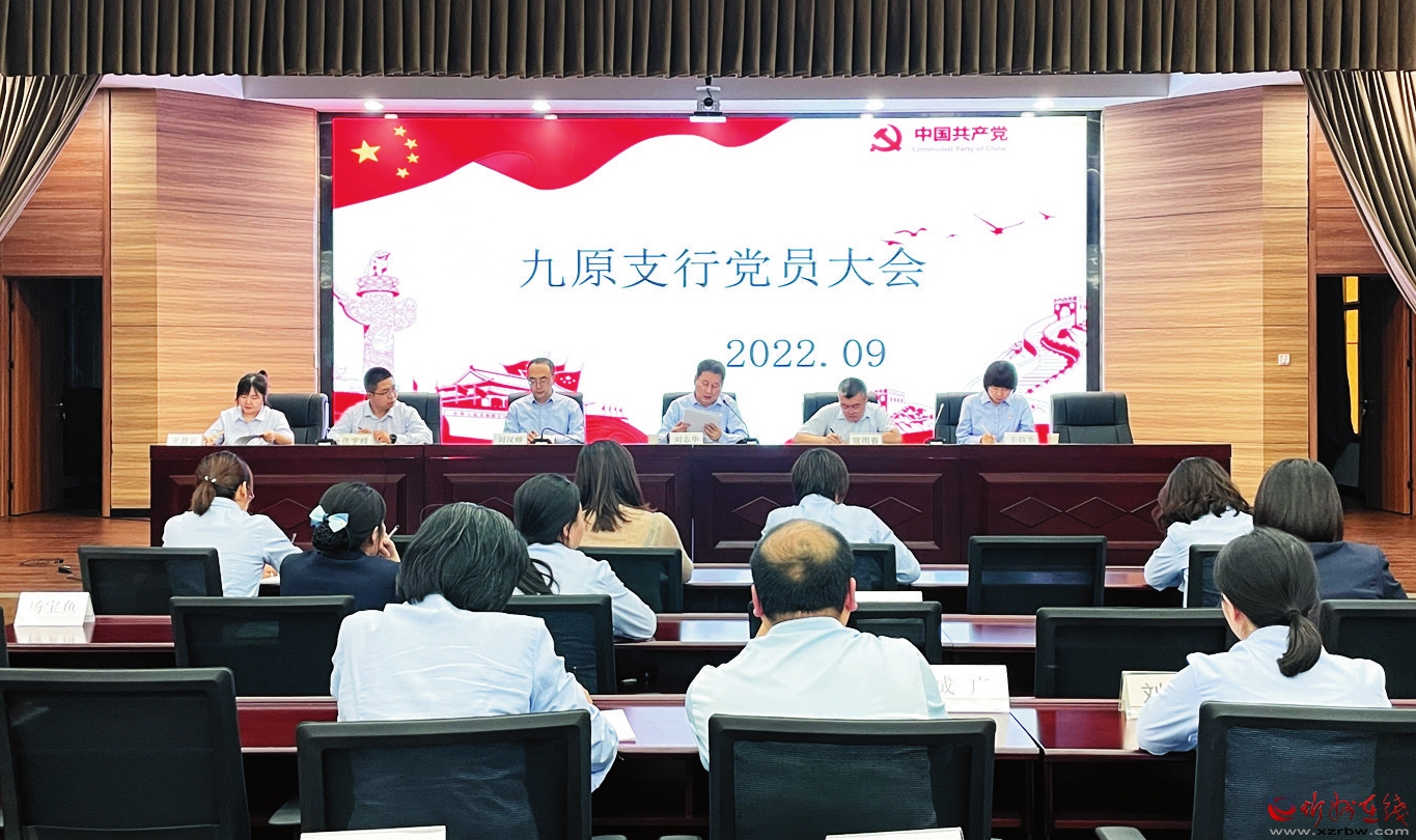 9月22日晚,工行九原支行組織召開黨員大會,該行黨總支委書記對下一步工作進行安排部署,帶領全體黨員認真學習了習近平總書記在《求是》雜志上發(fā)表的重要文章《全黨必須完整、準確、全面貫徹新發(fā)展理念》。 (班如喜 攝)
