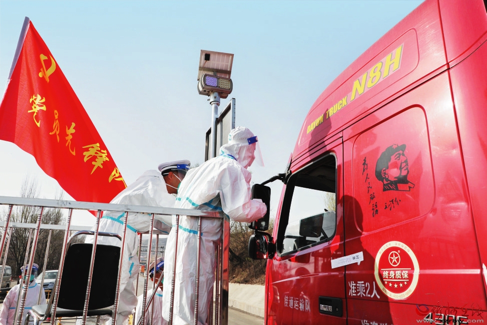 沖鋒在前,勇于擔(dān)當(dāng)。黨員先鋒崗成為抗疫戰(zhàn)場的亮麗風(fēng)景線。圖為原平市黨員志愿者在道路卡口值守。 褚 震攝