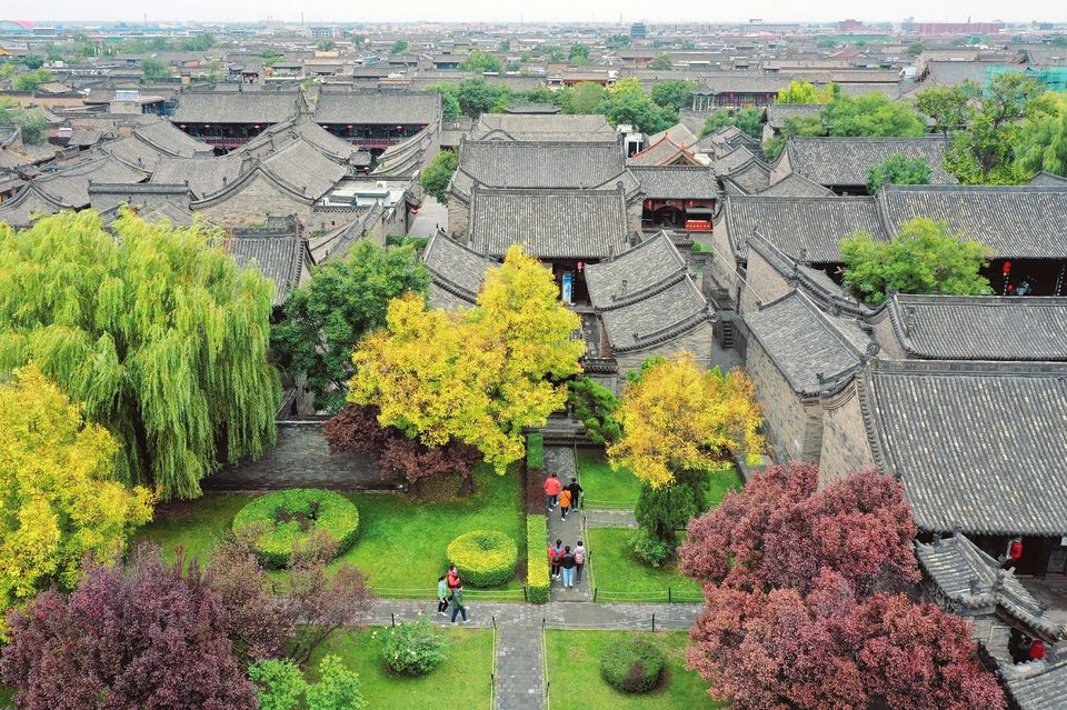 10月4日,游人在世界文化遺產(chǎn)平遙古城游覽。當日是我國傳統(tǒng)節(jié)日重陽節(jié),又逢國慶長假,人們來到平遙古城,登高遠眺,秋游觀景,歡度佳節(jié)。