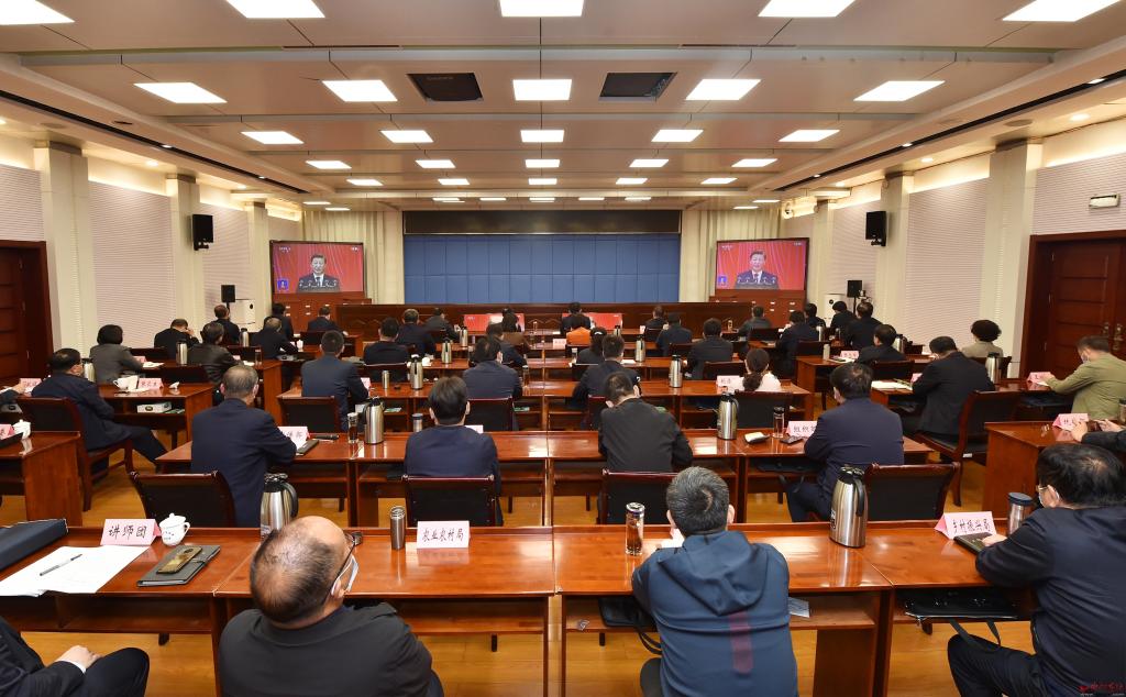 市領(lǐng)導(dǎo)集中收聽收看大會(huì)實(shí)況直播。馮曉磊 攝