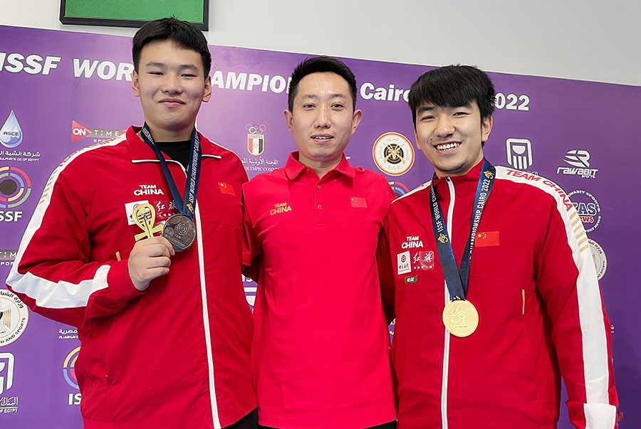 圖為山西運(yùn)動員射擊世錦賽獲獎瞬間。山西省體育局供圖