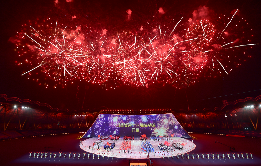 富有地域特色的暖場表演過后,在一萬多名現(xiàn)場觀眾聲震云霄的倒計時中,開幕儀式正式開始。國旗和會旗入場儀式后,各代表隊運動員、教練員在引導(dǎo)員和執(zhí)旗手的引導(dǎo)下,闊步入場。大同和朔州作為東道主,壓軸亮相,得到了觀眾的熱烈歡呼。之后,升國旗儀式和升會旗儀式莊嚴(yán)進(jìn)行,山西省第十六屆運動會宣布開幕。