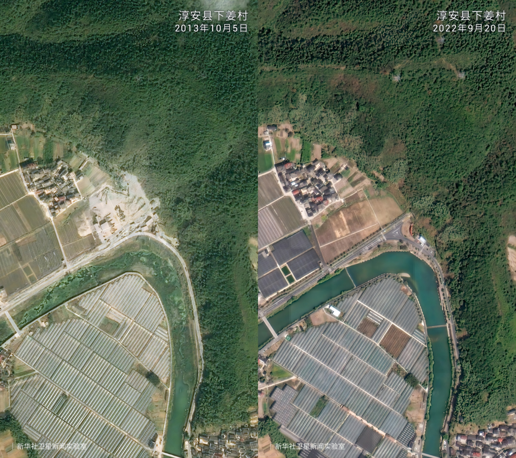 一組組衛(wèi)星對(duì)比圖見(jiàn)證了歲月流轉(zhuǎn)中的鄉(xiāng)村巨變。放眼浙江廣闊大地,這場(chǎng)跨越20年的美麗接力正煥發(fā)新的生機(jī)。