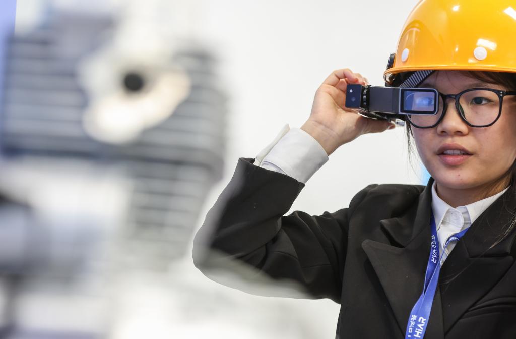 6月1日,昆山元宇宙產(chǎn)業(yè)園內(nèi)的亮風(fēng)臺(tái)(昆山)信息科技有限公司里,工作人員在演示AR智能穿戴設(shè)備賦能工業(yè)應(yīng)用的場景。新華社記者 楊磊 攝