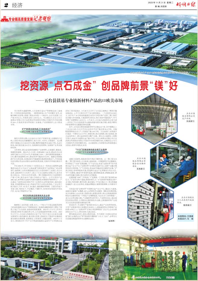 乘風(fēng)破浪會有時,直掛云帆濟(jì)滄海。作為國家工信部認(rèn)定的首批“鎂行業(yè)規(guī)范企業(yè)”和“國家級專精特新‘小巨人’企業(yè)”,必將為五臺縣建設(shè)鎂基新材料專業(yè)鎮(zhèn)增光添彩。 (金俊賢)
