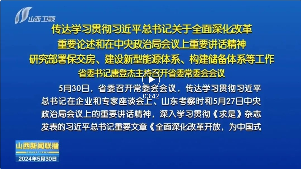 山西日報報道 5月30日,省委召開常委會會議,傳達學習貫徹習近平總書記在企業(yè)和專家座談會上、山東考察時和5月27日中央政治局會議上的重要講話精神,深入學習貫徹《求是》雜志發(fā)表的習近平總書記重要文章《全面深化改革開放,為中國式現代化持續(xù)注入強勁動力》,傳達貫徹全國切實做好保交房工作視頻會議精神,審議通過《山西省加快規(guī)劃建設新型能源體系的實施意見》《關于構建山西省儲備體系的行動方案》。省委書記唐登杰主持會議。