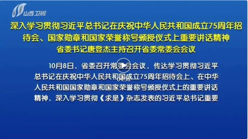 會(huì)議指出,習(xí)近平總書(shū)記在慶祝中華人民共和國(guó)成立75周年招待會(huì)上的重要講話,總結(jié)回顧75年來(lái)中國(guó)共產(chǎn)黨團(tuán)結(jié)帶領(lǐng)全國(guó)各族人民不懈奮斗取得的偉大成就,對(duì)推進(jìn)中國(guó)式現(xiàn)代化作出重大部署、提出明確要求,為把這一前無(wú)古人的偉大事業(yè)不斷推向前進(jìn)提供了根本遵循。走好新的征程,要始終堅(jiān)持黨的領(lǐng)導(dǎo),深刻領(lǐng)悟“兩個(gè)確立”的決定性意義,增強(qiáng)“四個(gè)意識(shí)”、堅(jiān)定“四個(gè)自信”、做到“兩個(gè)維護(hù)”,持之以恒推進(jìn)全面從嚴(yán)治黨,確保黨中央各項(xiàng)決策部署在山西不折不扣落到實(shí)處。要始終堅(jiān)持中國(guó)特色社會(huì)主義道路,堅(jiān)定歷史自信,增強(qiáng)歷史主動(dòng),高舉改革開(kāi)放旗幟,堅(jiān)定扛牢使命任務(wù),在推動(dòng)高質(zhì)量發(fā)展、深化全方位轉(zhuǎn)型上不斷取得新成效。要始終堅(jiān)持以人民為中心,牢記黨的根本宗旨和國(guó)家性質(zhì),樹(shù)立和踐行正確政績(jī)觀,用心用情用力辦好民生實(shí)事,努力讓全省人民在共同奮斗中共享改革發(fā)展成果。要始終胸懷兩個(gè)大局、心懷“國(guó)之大者”,自覺(jué)把山西工作放到黨和國(guó)家工作大局中來(lái)定位、謀劃和推進(jìn),為以中國(guó)式現(xiàn)代化全面推進(jìn)強(qiáng)國(guó)建設(shè)、民族復(fù)興偉業(yè)作出山西貢獻(xiàn)。