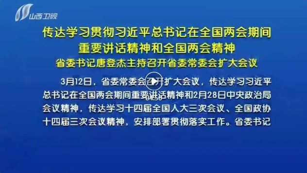 山西日報報道3月12日,省委常委會召開擴大會議,傳達(dá)學(xué)習(xí)習(xí)近平總書記在全國兩會期間重要講話精神和2月28日中央政治局會議精神,傳達(dá)學(xué)習(xí)十四屆全國人大三次會議、全國政協(xié)十四屆三次會議精神,安排部署貫徹落實工作。省委書記唐登杰主持會議。