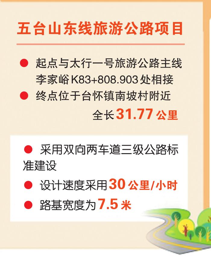 五臺山東線旅游公路起點與太行一號旅游公路主線李家峪K83+808.903處相接,終點位于臺懷鎮(zhèn)南坡村附近,全長31.77公里,采用雙向兩車道三級公路標準建設(shè),設(shè)計速度采用30公里/小時,路基寬度為7.5米。項目實施圍繞“扶貧、旅游、生態(tài)、人文、研學”等核心宗旨,著力提升五臺山風景名勝區(qū)旅游公路的通行能力與服務(wù)水平,強化“交通+旅游”與“經(jīng)濟增長”的導(dǎo)向作用。