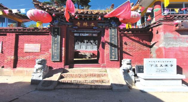 下莊文殊寺位于五臺縣東雷鄉(xiāng)下莊村中,始創(chuàng)年代不詳,現(xiàn)存建筑為明代所建。寺廟坐北向南,占地面積368平方米。山門一間,中置板門。正殿面寬三間、進(jìn)深五椽,前出廊(此走廊屬清代遺構(gòu),為后期加接),廊柱施斗拱,大斗口內(nèi)出跳,兩側(cè)帶有雕花翼拱。檐柱頭斗拱為五踩,其下昂已被鋸掉(現(xiàn)存昂嘴為清代更換的如意昂式);平身科斗拱亦為五踩。當(dāng)心間設(shè)門,兩次間設(shè)直欞窗。