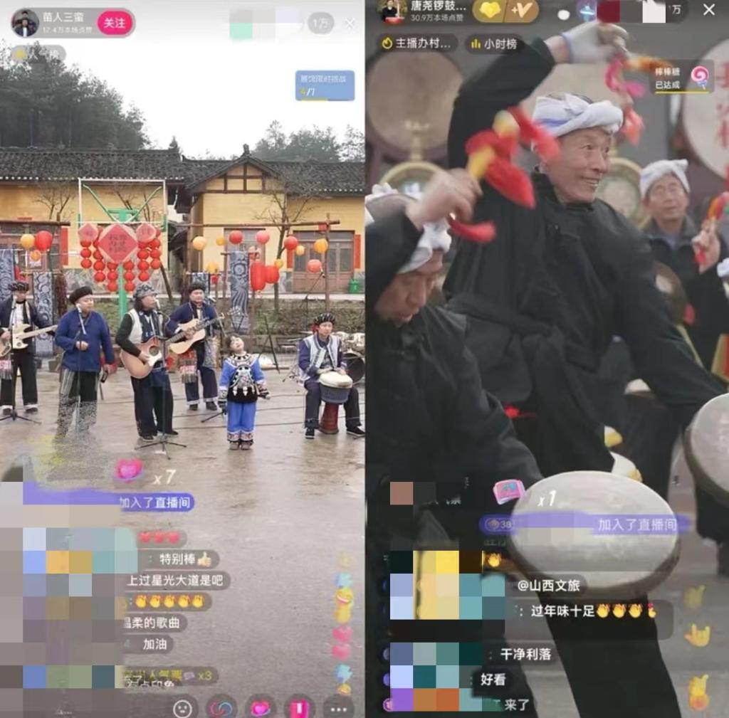 湖南省鳳凰縣臘爾山鎮(zhèn)苗寨中,4個(gè)“90后”苗族小伙組成樂(lè)隊(duì)自辦“村晚”,規(guī)模不大,唱火家鄉(xiāng);山西臨汾的村民們用簸箕、黃豆當(dāng)樂(lè)器,配合嗩吶和非遺晉南威風(fēng)鑼鼓,直播連線上千公里外的苗鄉(xiāng),南北大聯(lián)歡釋放獨(dú)特的精彩,吸引在線觀眾近800萬(wàn)人……