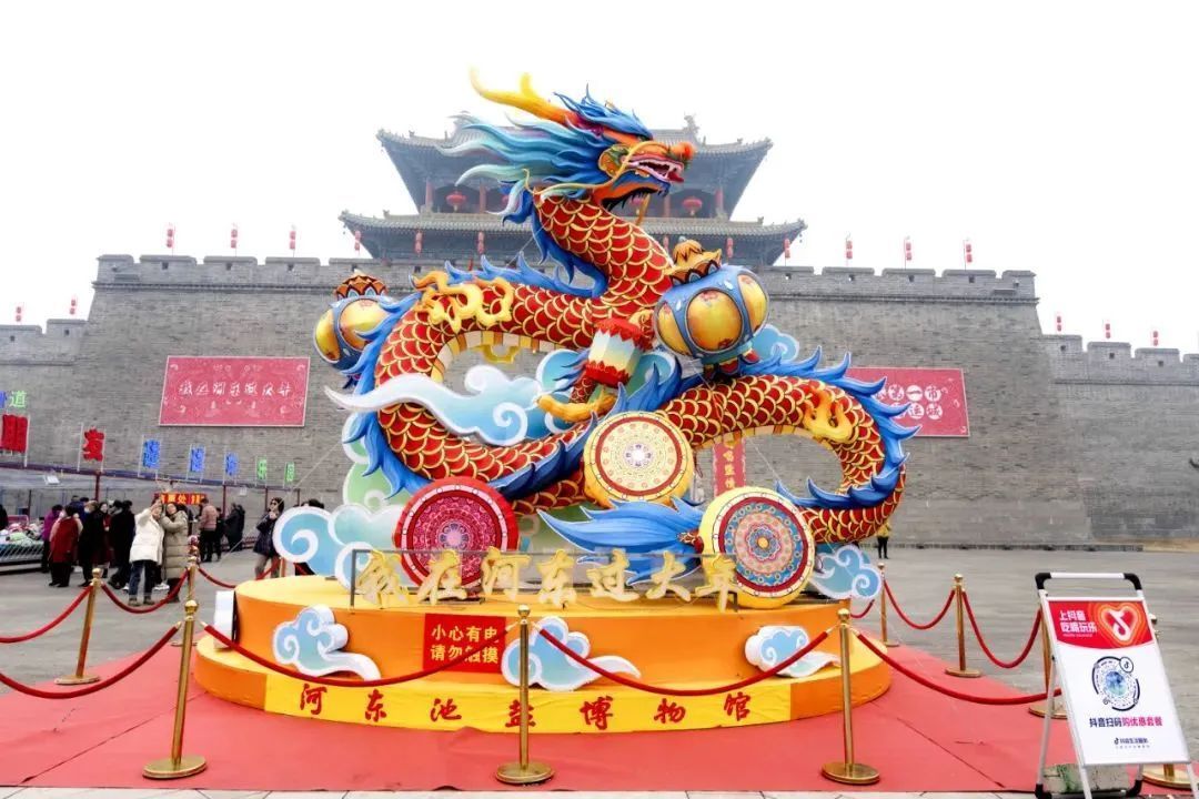運(yùn)城市河?xùn)|池鹽文化博覽園,龍年燈會(huì)上游人如織