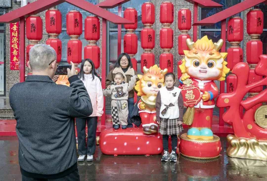 人們?cè)陉?yáng)泉記憶·1947文化園舉辦的2024新春游園會(huì)上打卡拍照