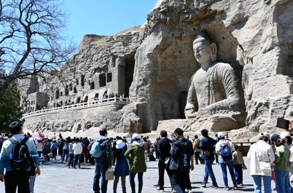 ▲2023年5月,游客在大同云岡石窟游覽。云岡石窟的開鑿始于北魏時(shí)期,為中國規(guī)模最大的古代石窟群之一,與敦煌莫高窟、洛陽龍門石窟和天水麥積山石窟并稱為中國四大石窟藝術(shù)寶庫。山西日報(bào)記者劉通攝
