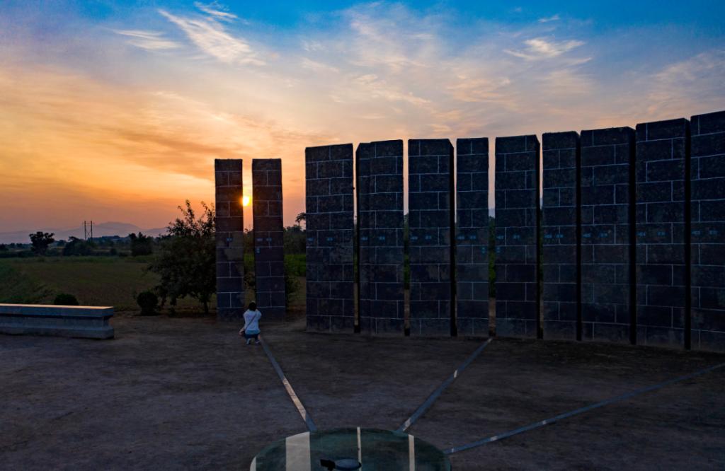 ▲2023年6月21日,人們在臨汾市襄汾縣陶寺遺址觀象臺(tái)觀看日出天文景象。當(dāng)日是二十四節(jié)氣“夏至”,在山西省臨汾市襄汾縣陶寺遺址觀象臺(tái),人們近距離體驗(yàn)“太陽-觀測縫-觀測點(diǎn)”之間形成的三點(diǎn)一線天象奇觀,了解古代確定季節(jié)、節(jié)氣,安排農(nóng)耕的天文歷法。陶寺古觀象臺(tái)距今約4700年,是陶寺遺址考古中的重大發(fā)現(xiàn)。李現(xiàn)俊攝