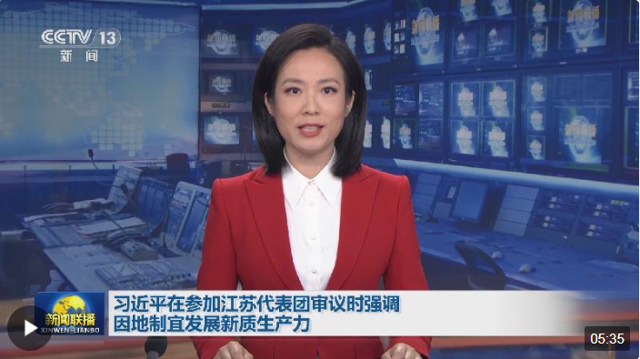 今年這次到江蘇團(tuán),總書記重點(diǎn)談的是因地制宜發(fā)展新質(zhì)生產(chǎn)力。發(fā)展新質(zhì)生產(chǎn)力,為何強(qiáng)調(diào)“因地制宜”?在江蘇團(tuán),總書記還傳遞了哪些重要信息?《時(shí)政新聞眼》兩會(huì)特刊為你解讀。