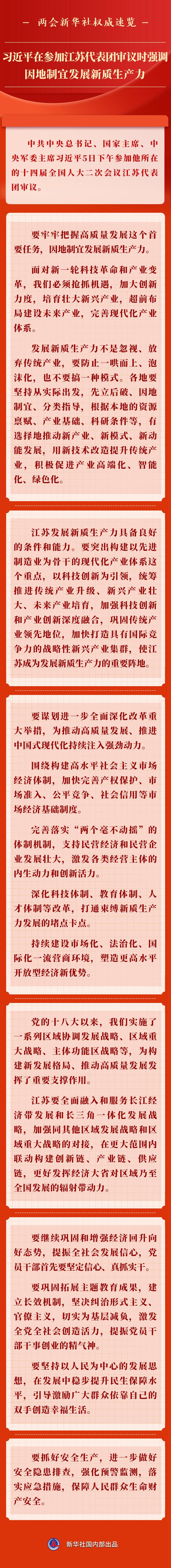 兩會(huì)新華社權(quán)威速覽丨習(xí)近平在參加江蘇代表團(tuán)審議時(shí)強(qiáng)調(diào) 因地制宜發(fā)展新質(zhì)生產(chǎn)力