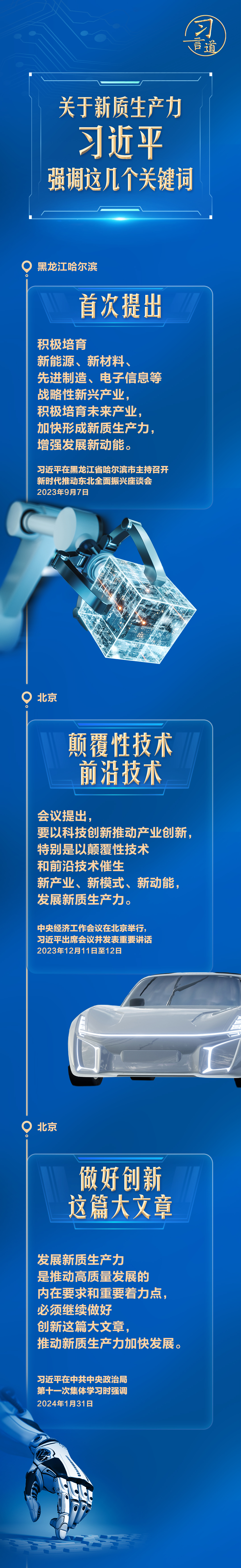 從去年9月在黑龍江考察時(shí)首次提出,到今年1月在中央政治局第十一次集體學(xué)習(xí)時(shí)系統(tǒng)闡述,再到此次兩會(huì)期間強(qiáng)調(diào),習(xí)近平多次談到新質(zhì)生產(chǎn)力。讓我們沿著總書記的足跡,一起研讀。