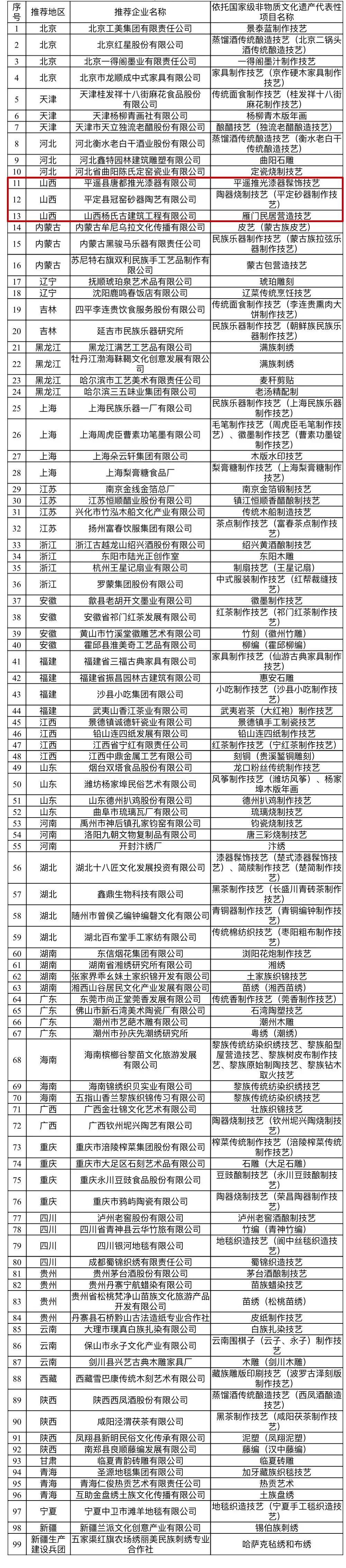2023-2025年國(guó)家級(jí)非物質(zhì)文化遺產(chǎn)生產(chǎn)性保護(hù)示范基地名單(99家排序不分先后)