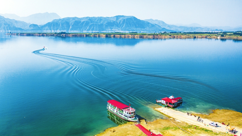 5月5日,在垣曲縣古城國(guó)家濕地公園內(nèi),游客或乘游輪、或乘快艇,游覽濕地如詩(shī)如畫美景,樂享假日。近年來,隨著當(dāng)?shù)丶哟鬂竦亻_發(fā)與保護(hù)力度,黃河濕地生態(tài)環(huán)境得以明顯改善,生態(tài)文明建設(shè)成果更好地惠及人民。