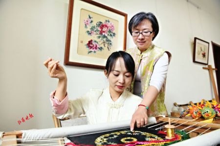 5.高寧經(jīng)常手把手教學(xué),希望能培養(yǎng)出山西民間刺繡設(shè)計和制作從業(yè)人員,和她一起傳承山西刺繡。