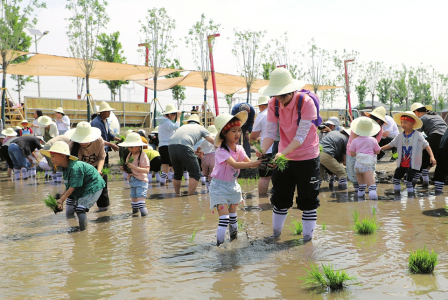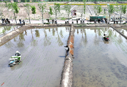 5月28日,太原市晉源區(qū)晉祠水稻插秧節(jié)在稻田公園舉行?;顒蝇F(xiàn)場,機器轟鳴、水波蕩漾,自動化插秧機勻速前進,水田里留下一簇簇新綠。卷褲腳、戴草帽、踏稻田、插秧苗、踩泥巴、捉魚蝦……一群群研學(xué)的孩子分批下田,感受手工插秧的樂趣,細嗅農(nóng)耕勞作的氣息。田埂上圍觀群眾的加油聲、喝彩聲不絕于耳,現(xiàn)場一片熱火朝天。