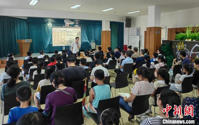 寧波圖書館“共讀Moment·閱經(jīng)典”活動(dòng)現(xiàn)場幾乎座無虛席,當(dāng)?shù)刂Z文教師北辰為孩子們講解柳宗元的《江雪》。 中新網(wǎng)記者 應(yīng)妮 攝
