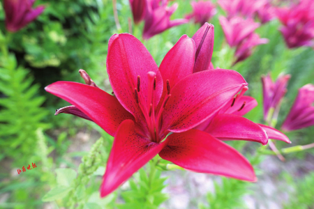 百合花種類(lèi)繁多,形態(tài)各異。純凈高雅的白色、熱情嫵媚的紅色、明麗澄澈的橙黃、浪漫俏皮的粉紅、雍容華貴的紫色,形似漏斗,又如喇叭,或向上開(kāi)花,張揚(yáng)外翻、極端華麗,或含露低垂,矜持含蓄、超凡脫俗。花間蜂蝶飛舞,暗香浮動(dòng),游人三五成群,在花叢合影拍照,游玩嬉戲,好不愜意。市民王女士對(duì)這里贊賞有加:“看到這五顏六色的百合花,我的心情像盛開(kāi)的花一樣,特別美!這里每季有每季的花開(kāi),每次來(lái)都有不一樣的驚喜和精彩。”