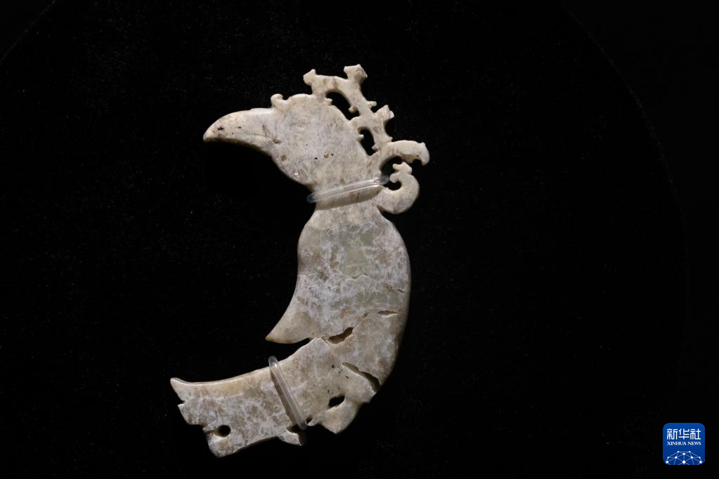 這是7月28日在重慶中國(guó)三峽博物館舉行的“玉出大江——長(zhǎng)江流域史前玉器特展”上拍攝的肖家屋脊文化玉鳳。(新華社記者 黃偉 攝)