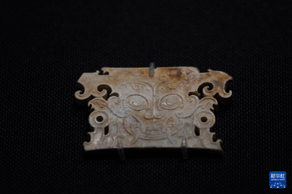 這是7月28日在重慶中國(guó)三峽博物館舉行的“玉出大江——長(zhǎng)江流域史前玉器特展”上拍攝的肖家屋脊文化獠牙神面玉牌飾。(新華社記者 黃偉 攝)