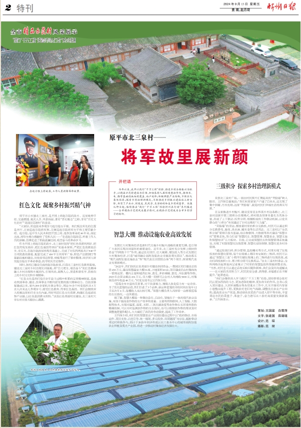 今年以來,我市以踐行“千萬工程”經(jīng)驗、推進鄉(xiāng)村全面振興為抓手,以精品示范村建設為引領,加快農村人居環(huán)境整治步伐,推動水、電、路等基礎設施向村覆蓋、向戶延伸;積極調整產業(yè)結構,不斷壯大集體經(jīng)濟;探索鄉(xiāng)村治理新模式,不斷推進鄉(xiāng)村振興建設邁上新臺階,書寫了產業(yè)興、環(huán)境美、民風淳、生活好的和美鄉(xiāng)村新篇章。本報從即日起,陸續(xù)推出“踐行‘千萬工程’經(jīng)驗忻州在行動”系列報道——全市精品示范村風采展示特刊,讓精品示范村成為全市鄉(xiāng)村學習的標桿。