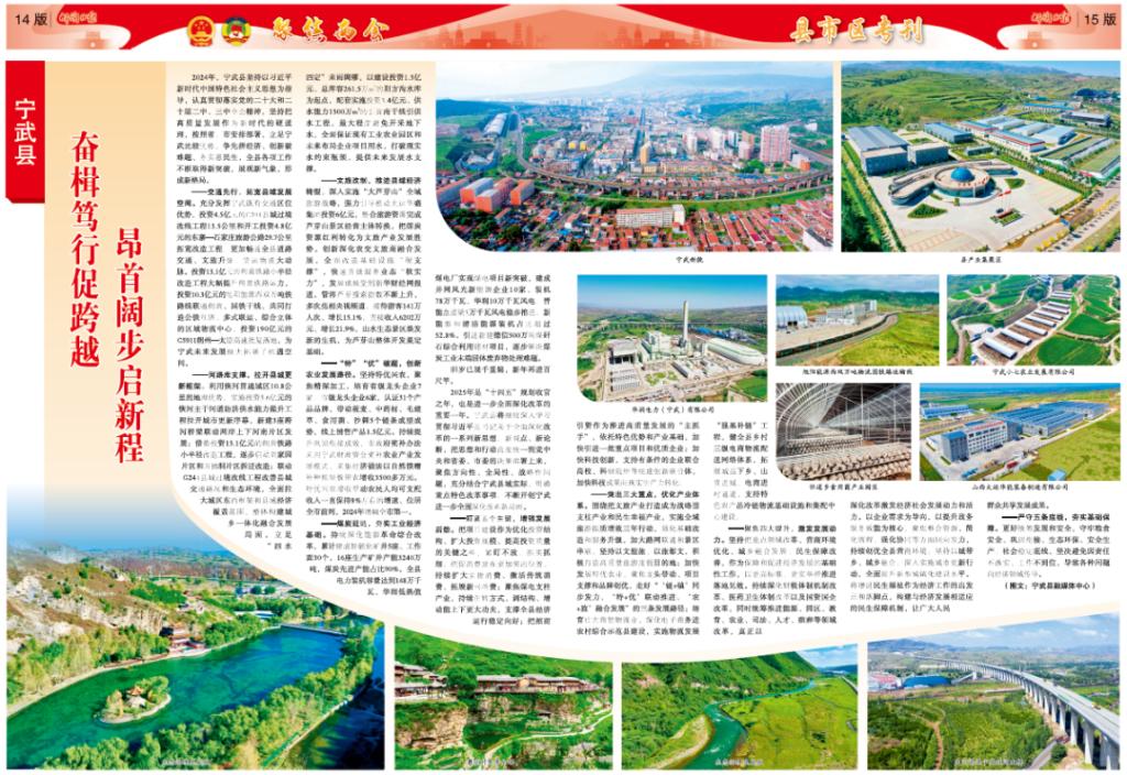 2024年,寧武縣堅持以習近平新時代中國特色社會主義思想為指導,認真貫徹落實黨的二十大和二十屆二中、三中全會精神,堅持把高質(zhì)量發(fā)展作為新時代的硬道理,按照省、市安排部署,立足寧武比較優(yōu)勢,爭先拼經(jīng)濟、創(chuàng)新破難題、務實惠民生,全縣各項工作不斷取得新突破,展現(xiàn)新氣象,形成新格局。