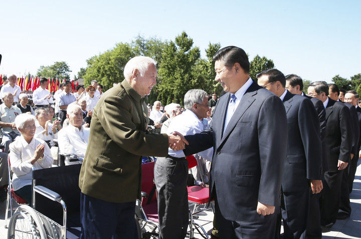 2014年9月3日上午,習(xí)近平與抗戰(zhàn)老戰(zhàn)士和老同志、抗戰(zhàn)烈士親屬、為抗戰(zhàn)勝利作出貢獻(xiàn)的國(guó)際友人遺屬代表親切會(huì)面。