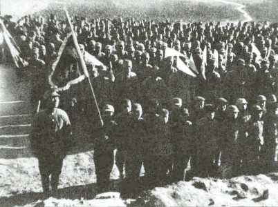八路軍某部和群眾一起采集樹(shù)葉充饑,堅(jiān)持抗戰(zhàn)。