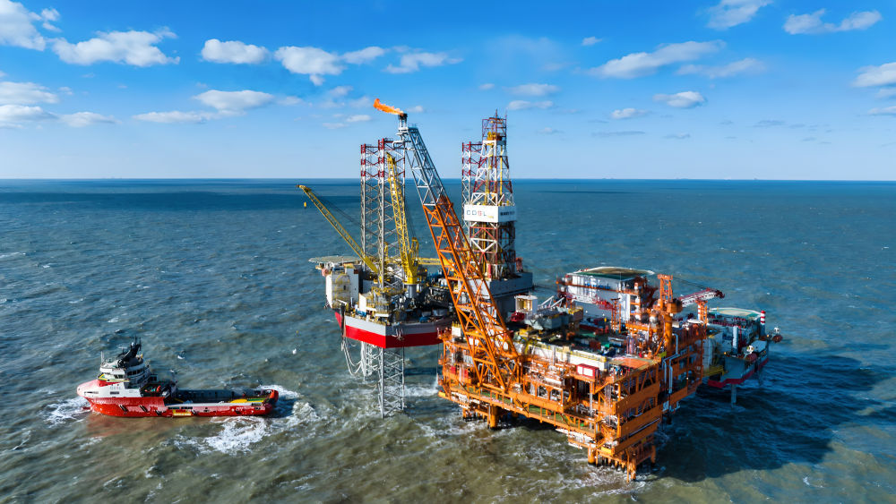 這是2025年2月8日拍攝的渤中26-6油田一期開發(fā)項目海上作業(yè)平臺(無人機照片)。新華社發(fā)(杜鵬輝 攝)