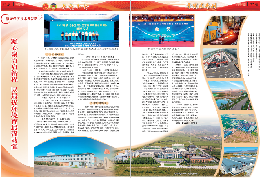 為確保“十五五”規(guī)劃落地見(jiàn)效,繁峙經(jīng)濟(jì)技術(shù)開(kāi)發(fā)區(qū)將多措并舉強(qiáng)化實(shí)施保障。一是創(chuàng)新服務(wù)機(jī)制,完善“13210”項(xiàng)目全生命周期服務(wù)體系,強(qiáng)化土地、資金、人才等要素精準(zhǔn)供給;二是培育市場(chǎng)主體,實(shí)施企業(yè)梯度培育工程,力爭(zhēng)“四上”企業(yè)突破60家、高新技術(shù)企業(yè)達(dá)到20家以上;三是堅(jiān)持綠色發(fā)展,建設(shè)綠電示范園區(qū),嚴(yán)格能耗雙控,推動(dòng)單位工業(yè)增加值能耗持續(xù)下降;四是深化市場(chǎng)化改革,推進(jìn)“小管委會(huì)+大公司”模式,激發(fā)體制機(jī)制活力,全力打造山西省高質(zhì)量發(fā)展示范園區(qū)。